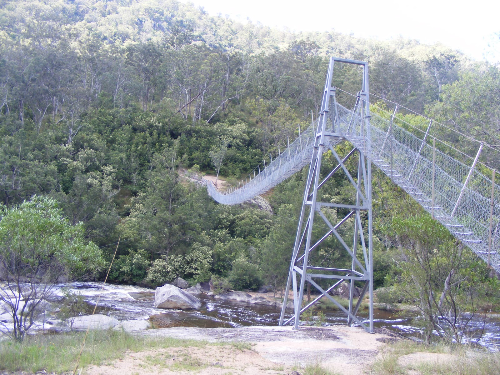 I stopped over in Rainbow Beach to visit Fraser Island, the largest sand island in the world. The popular thing to do was to take a 3 day, 2 night tour of Fraser Island, but I didn't have the time or the interest in doing that. I opted for a 1 day tour instead. The tour was very good, well worth it. The guide was very informative, giving us more information than we could digest about the history of Fraser Island - from how it was was formed to the flora and fauna of the island to the Aborigibal peoples that inhabited the island.We boarded a big four wheel drive bus and took a 10 minute ferry ride to the island. The shore of the island acted as a highway and an airstrip. I saw a couple planes take off and land, which was pretty cool. The waters around the island contain sharks: nurse, leopard, and tiger, so no swimming at the beach. Also on the island are dingoes. I unfortunately saw neither sharks nor dingoes while I was on the island. The tour stopped by the remains of a shipwreck which was pretty neat to look at. The ship washed ashore in 1935 and since then the water and sand have been constantly eating away at it so that now it is partially buried in sand and its metal is rusted and jagged. Inward on Fraser Island is a rainforest and freshwater lakes. All the lakes are replenished solely by rainfall. The rainforest grew right out of the sand, which was quite unique. We stopped at the largest of the freshwater lakes, Lake Mackenzie for a very refreshing afternoon swim. The waters of the lake were crystal clear and 75 degrees. After a delicious lunch, complete with beer, we went on a walk through the rainforest. The walk took us down alongside a creek, though you wouldn't know it if you closed your eyes. The creek was eerily silent; there was no sound of running water. As it was explained to us it is because there are no rocks on the island, only sand. This gave the rainforest a very peaceful, almost magical atmosphere that I was disappointed to leave.